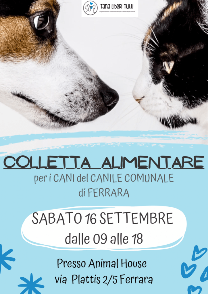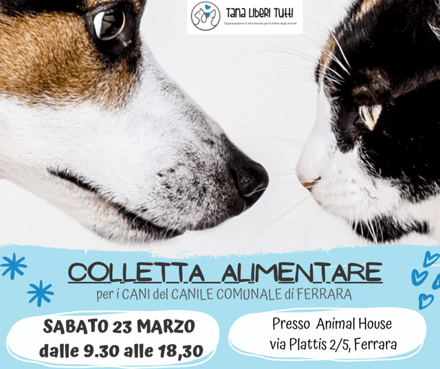 Vi aspettiamo per raccogliere cibo da destinare al Canile Comunale di Ferrara e alle colonie feline di Ferrara e dintorni.